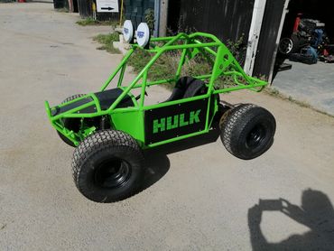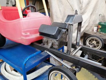 A tot rod made from scratch with a kids pedal bike and go kart wheels with a Little Tykes car... From a quad bike to a Hulk cart with go kart engine, what ever next....